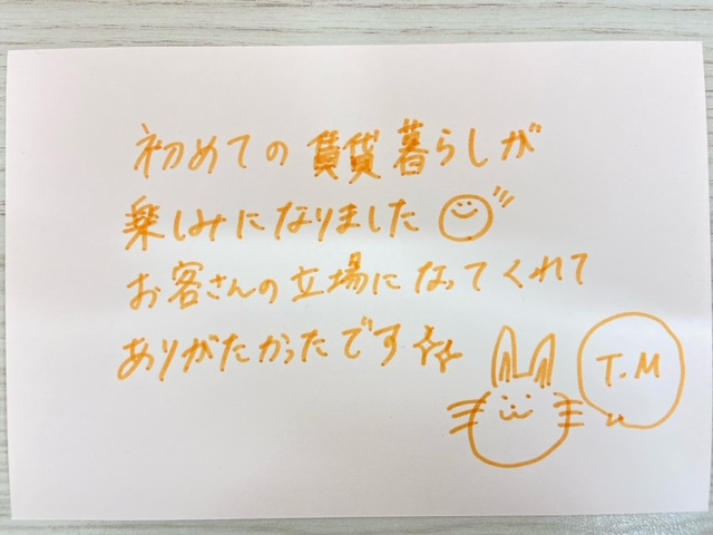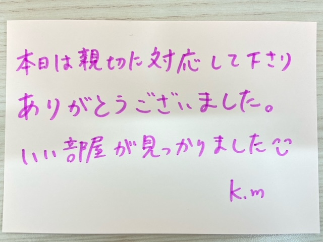 お部屋探しのご感想もたくさんいただいておりますので、ご紹介させていただきます。