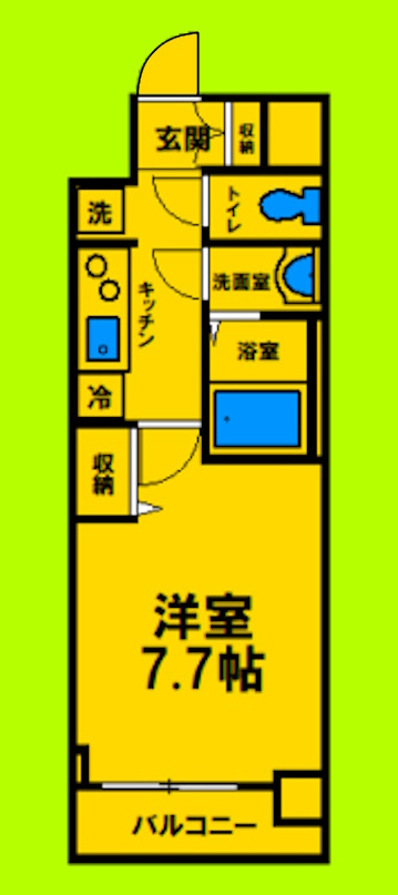 間取りは広々7.7帖の1Kタイプ
